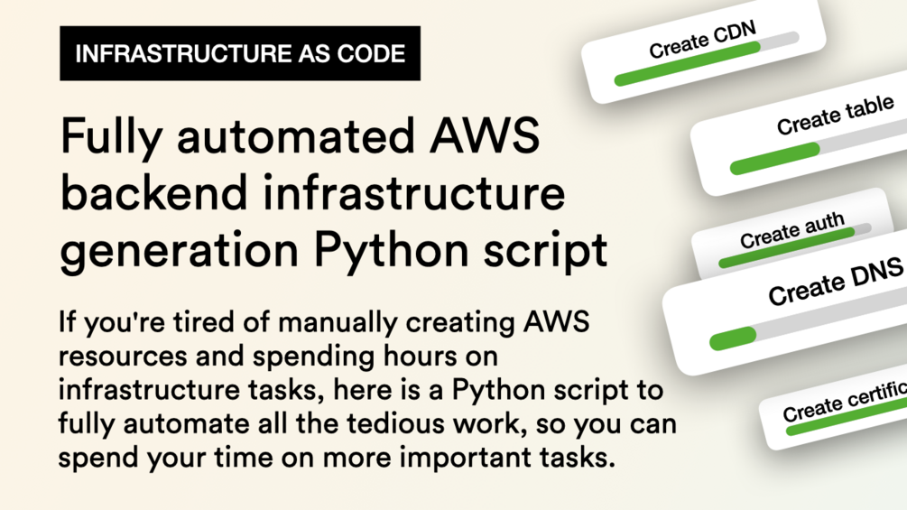 If you're tired of manually creating AWS resources and spending hours on infrastructure tasks, here is a Python script to fully automate all the tedious work, so you can spend your time on more important tasks.